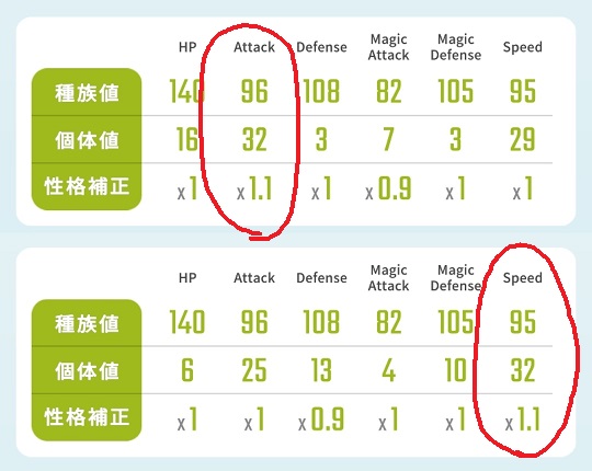 物理攻撃最強と最速個体値のモミコを進化させました。